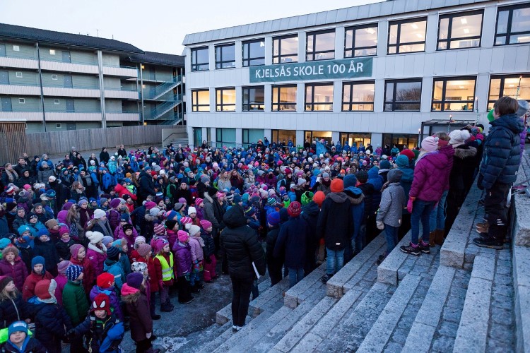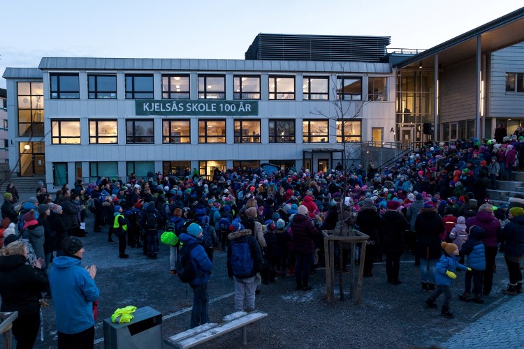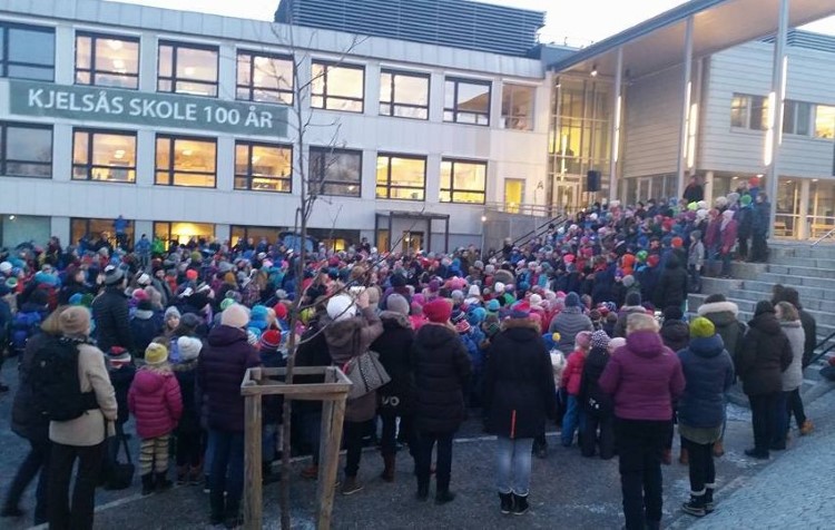 Inger Johanne ler. - Ja, Kjelsås skole har betydd mye for oss, gjennom hele livet. Nå gratulerer vi skolen med jubileet og ønsker alt godt i årene framover. Måtte Kjelsås skole bli som det står i skolesangen, skrevet av Kirsten Jonsborg, mor til en av elevene.