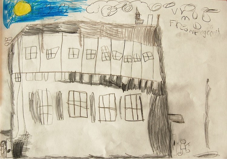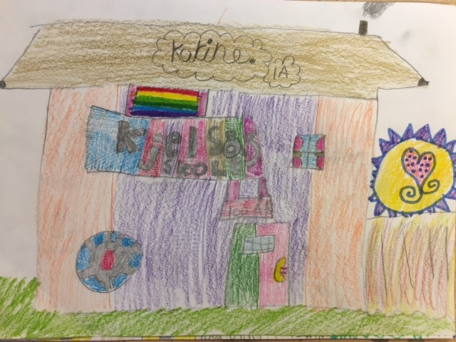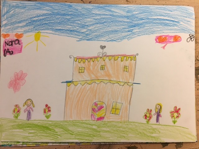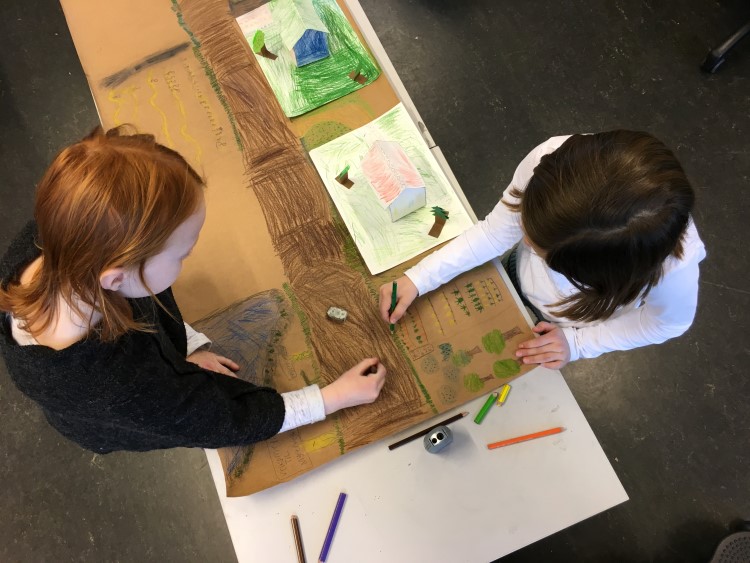 Hedda og Thora på 2. trinn lager hus slik de var på Kjelsås i gamle dager.